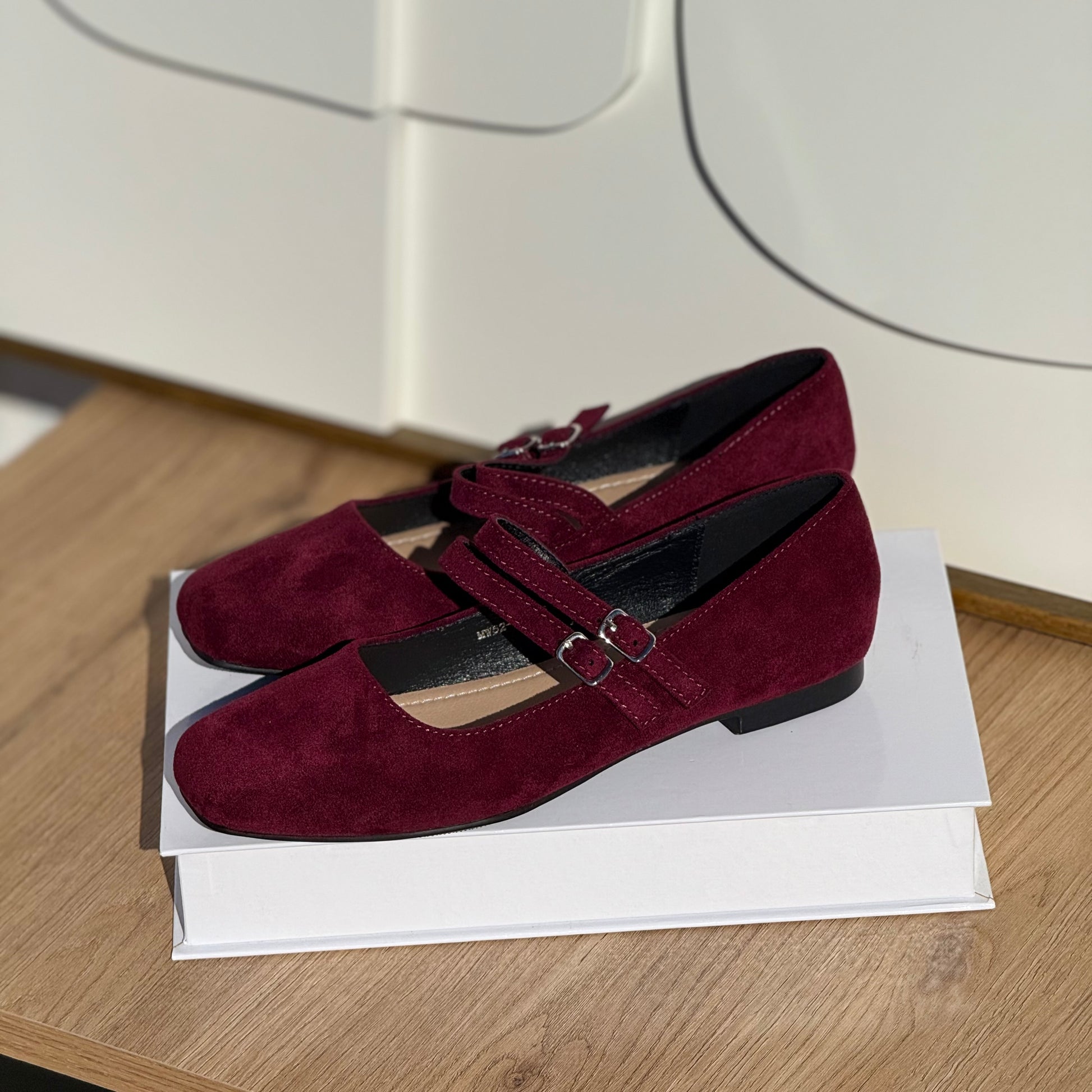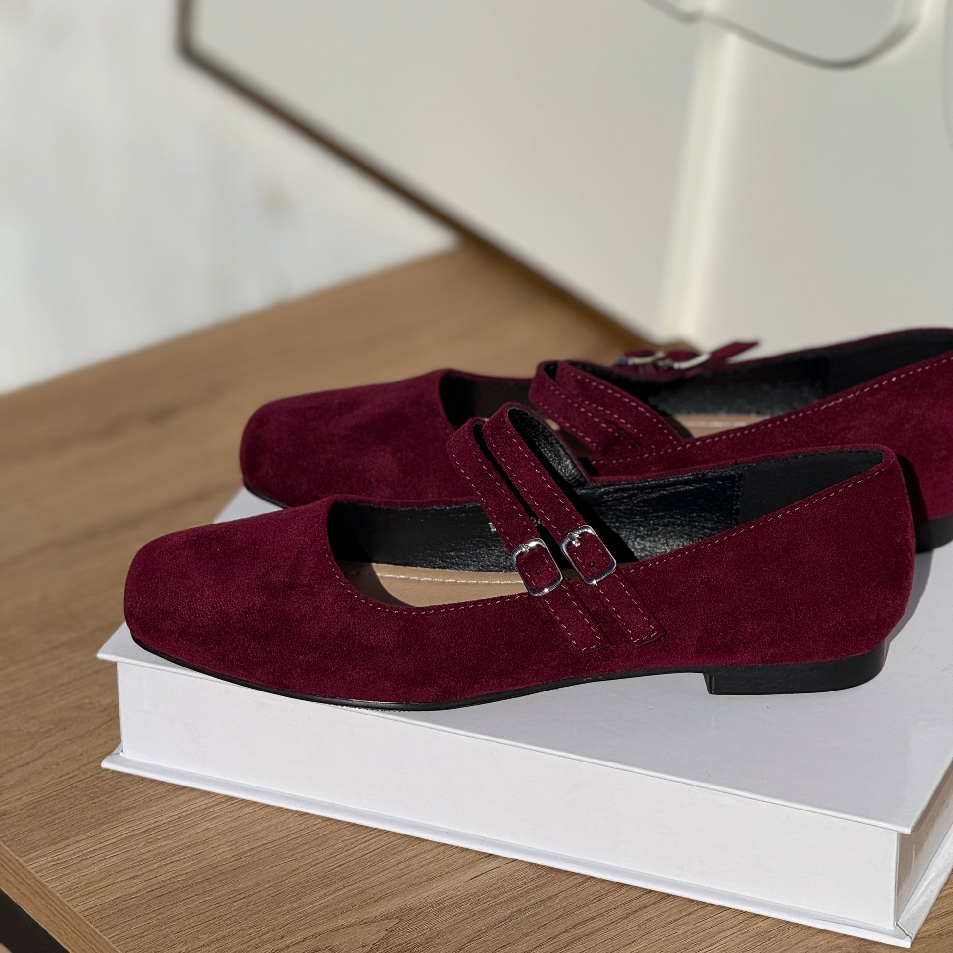 •Matière : Suédine bordeaux au fini velouté