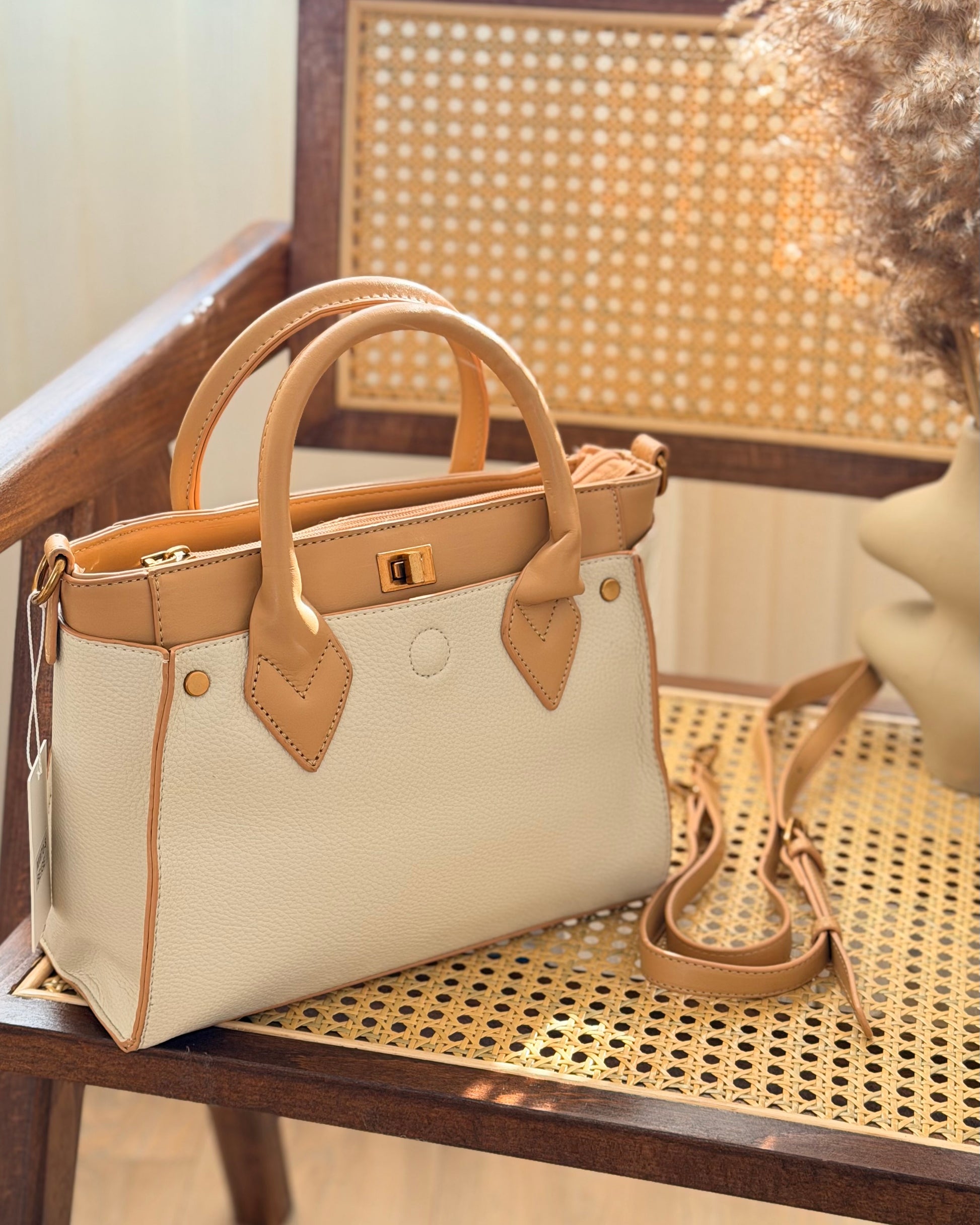 Sac à main chic et structuré en simili cuir, parfait pour un look élégant au quotidien. À porter à la main ou en bandoulière.