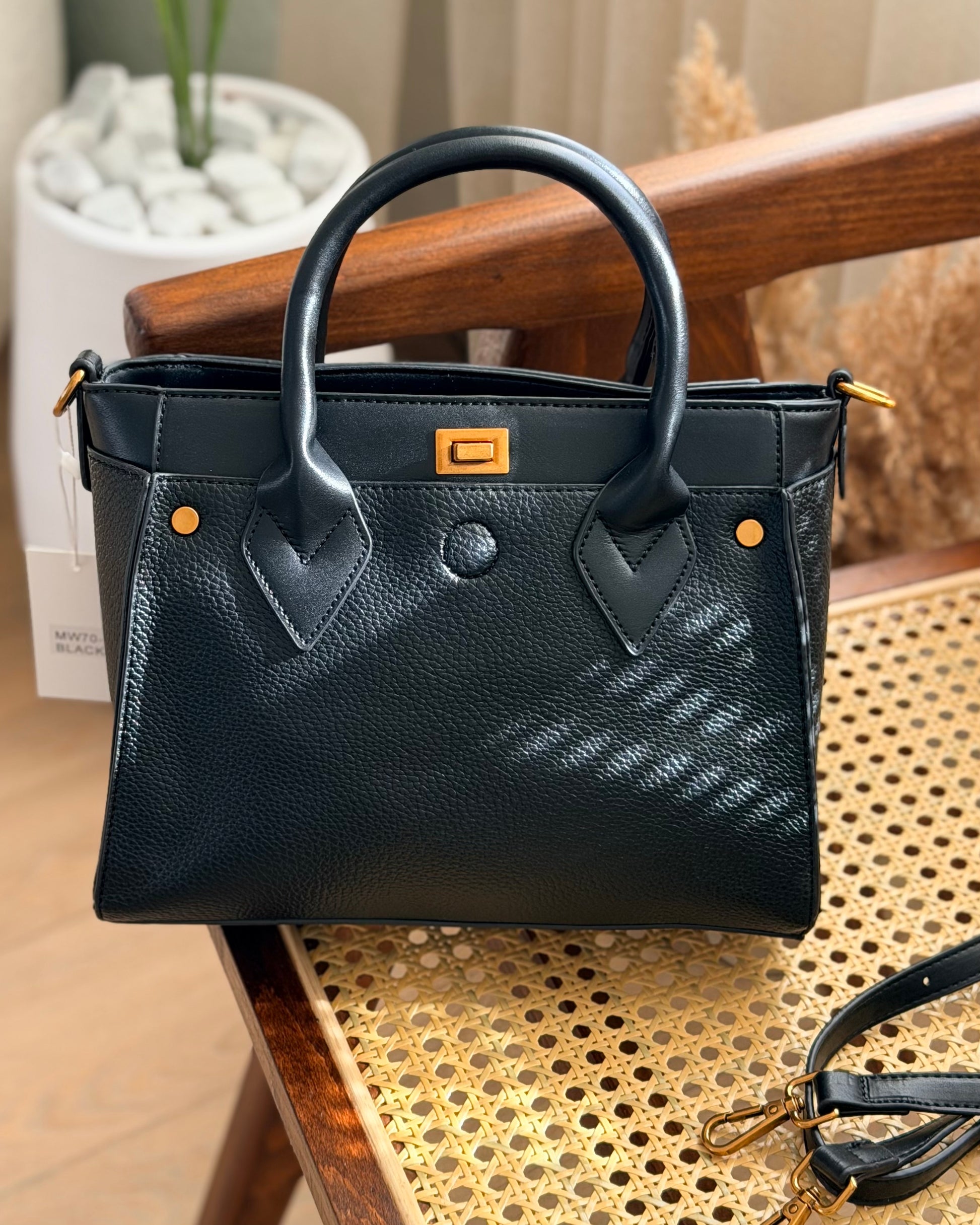 Sac à main chic et structuré en simili cuir, parfait pour un look élégant au quotidien. À porter à la main ou en bandoulière.