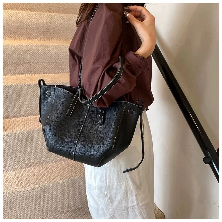 🖤Un sac à main en cuir grainé au design sculptural, l'accessoire indispensable pour une élégance minimaliste au quotidien.