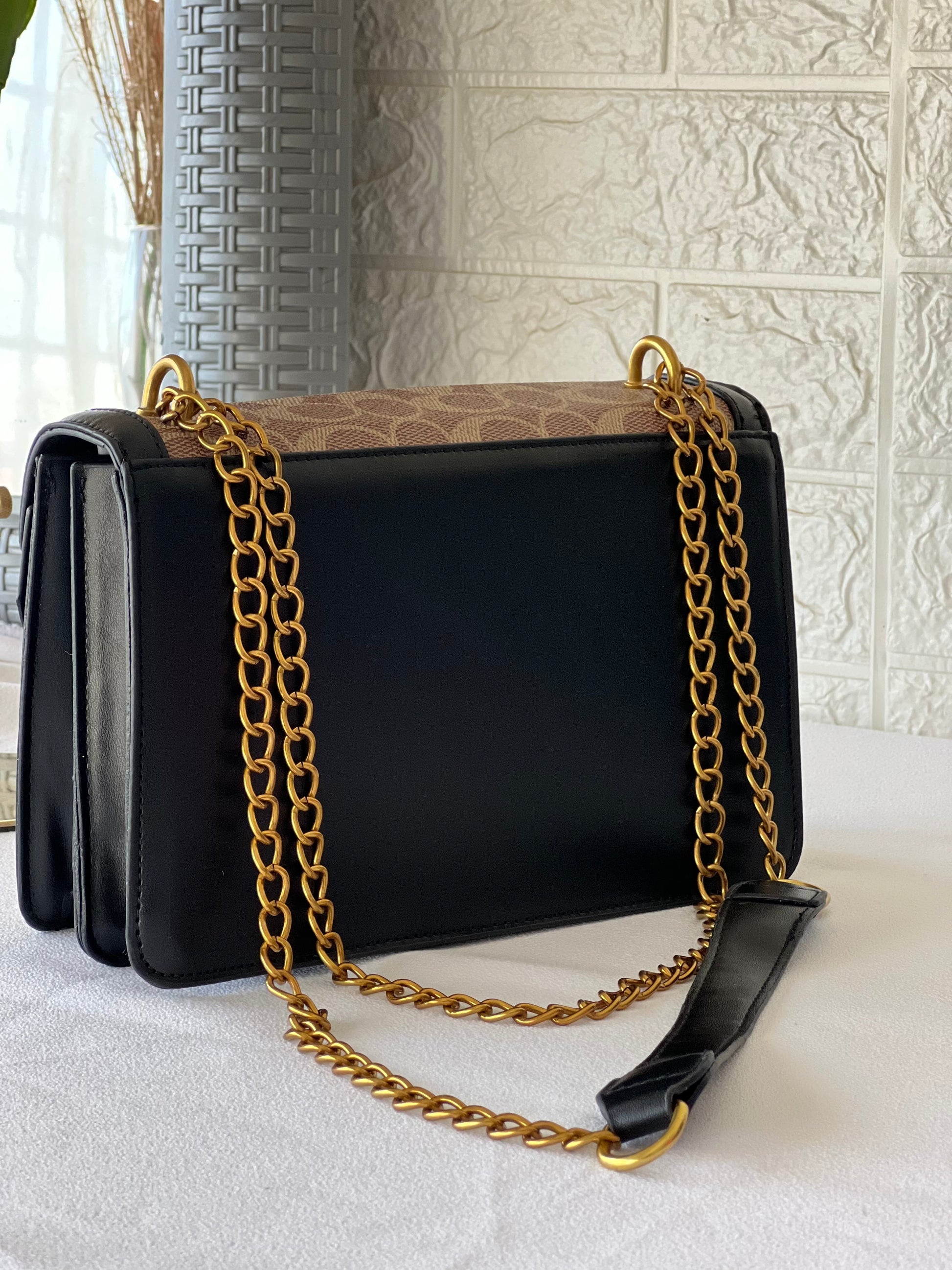 Sac Bandoulière Signature Noir & Beige - Fermoir Fer à Cheval
