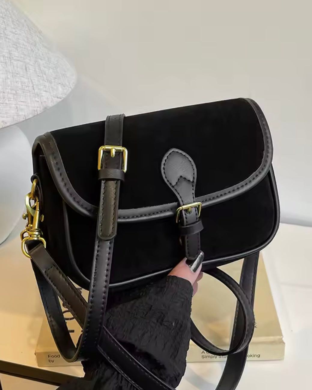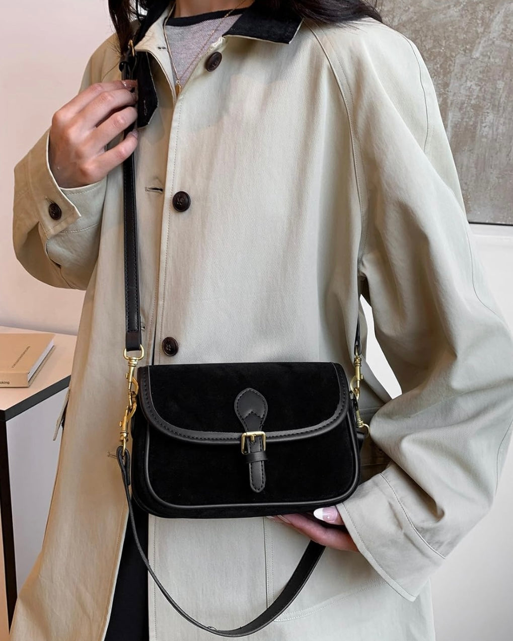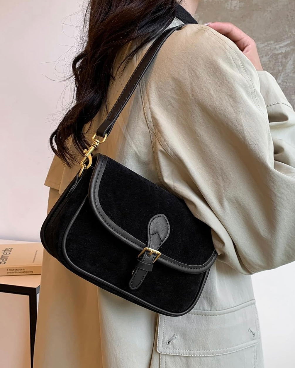 🎞️Sac bandoulière en suède au design rétro chic avec boucle doré ,l'accessoire intemporel pour sublimer vos tenues quotidiennes.
