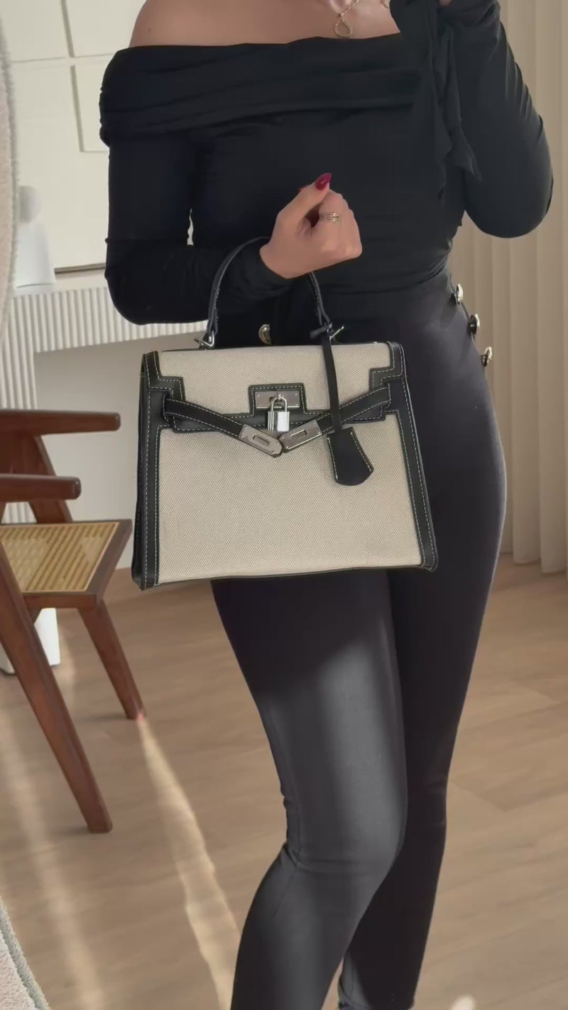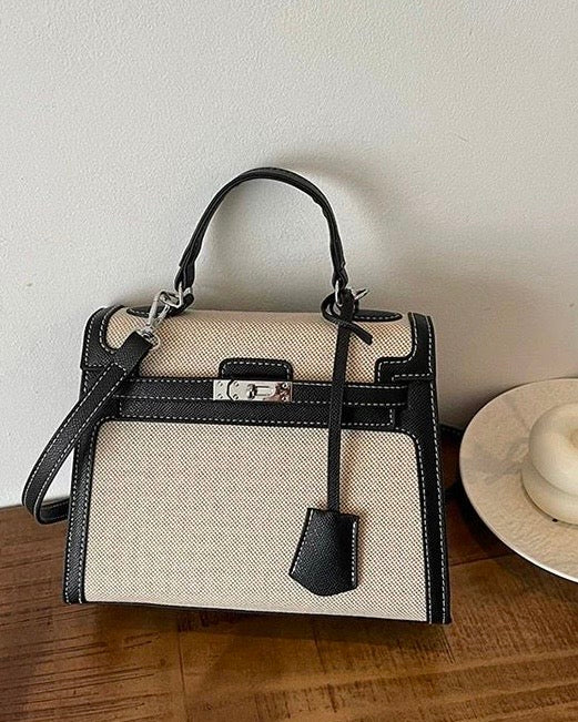 ✨Le sac Madison marie avec brio le charme authentique de la toile de lin et le caractère noble d'un cuir cognac finement surpiqué.